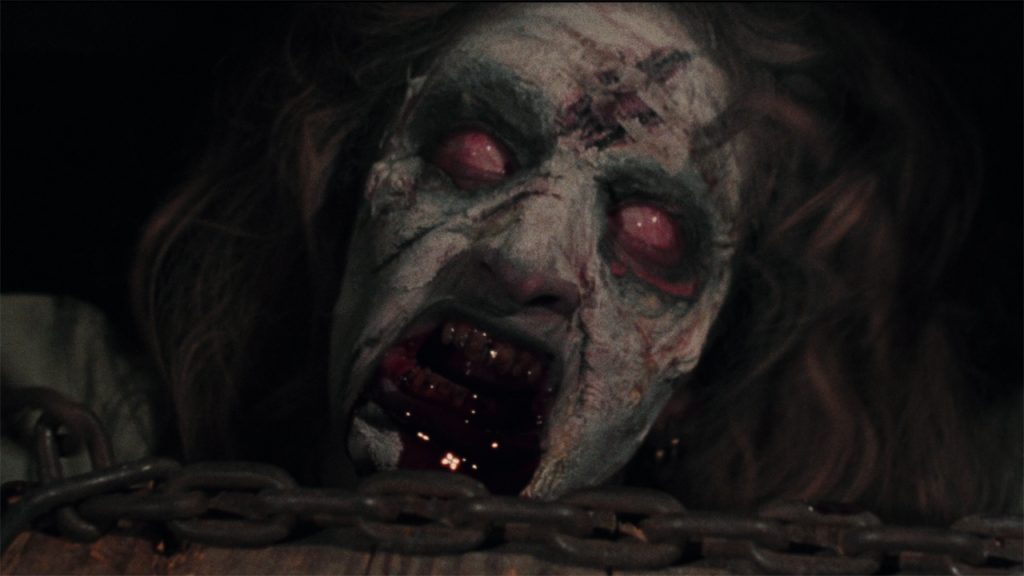The setup is solid enough. A mother, her two kids, and their cool rock chick aunt find themselves face to face with the Book of the Dead after a vinyl recording summons the usual horrors. As expected, possession kicks off, blood flies across the screen in tsunami-like amounts, and things get absolutely feral. It’s a nasty, mean-spirited film with some great gore and strong performances, especially Alyssa Sutherland’s wonderfully unhinged Deadite mum. Honestly, the cheese grater alone deserves its own spot in the horror hall of fame.