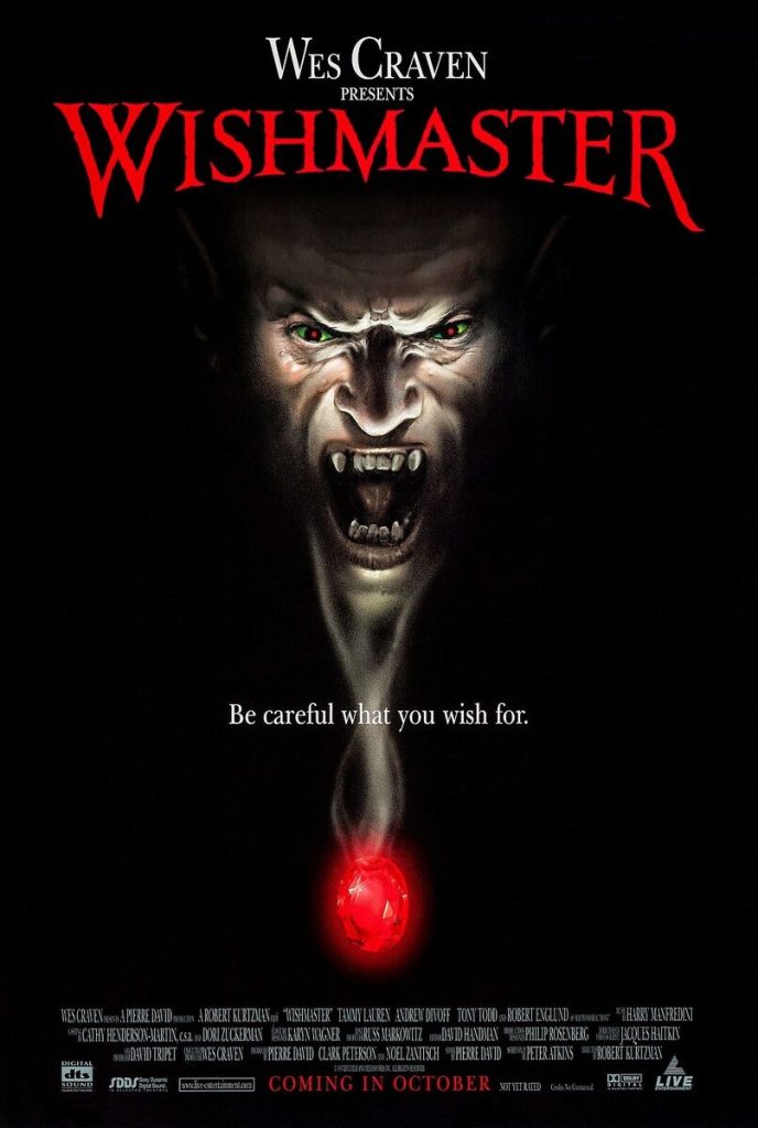 Directed by Robert Kurtzman and executive produced by Wes Craven, Wishmaster introduces The Djinn as a malevolent genie — not from fairy tales, but from pre-Islamic Persian lore. He is summoned when a fire opal is uncovered and awakened by a blood offering.